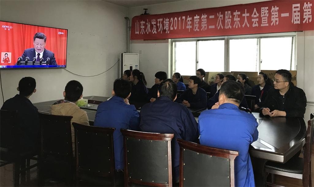 10月18日上午9:00,中国共产党第十九次全国代表大会开幕会在北京人民大会堂隆重召开。为及时学习掌握党的十九大精神,山东水发环境科技有限公司员工代表在领导班子的带领下收听收看中国共产党第十九次全国代表大会开幕会,认真聆听习近平总书记所作的报告。