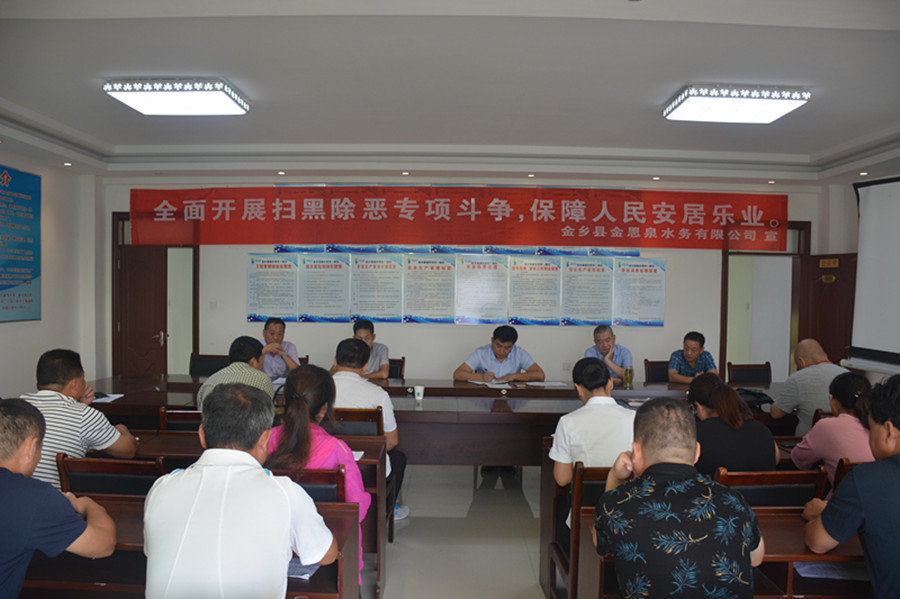 9月4日,金乡县金思泉水务有限公司开展“扫黑除恶、勇当先锋”主题党日活动。会议由党委书记苏文彬主持,全体党员干部参加。