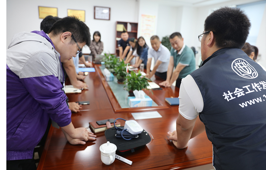 在讲座尾声,郭讲师提醒大家,办公室人员是肩周炎、颈椎病和腰椎间盘突出的高发人群,平时要注意多活动、多锻炼、多掌握一些按摩穴位的技能。他结合大家工作特点,给大家介绍了人体的经络穴位的养生知识,并为大家亲身示范了一些关键穴位的位置及按摩方法。