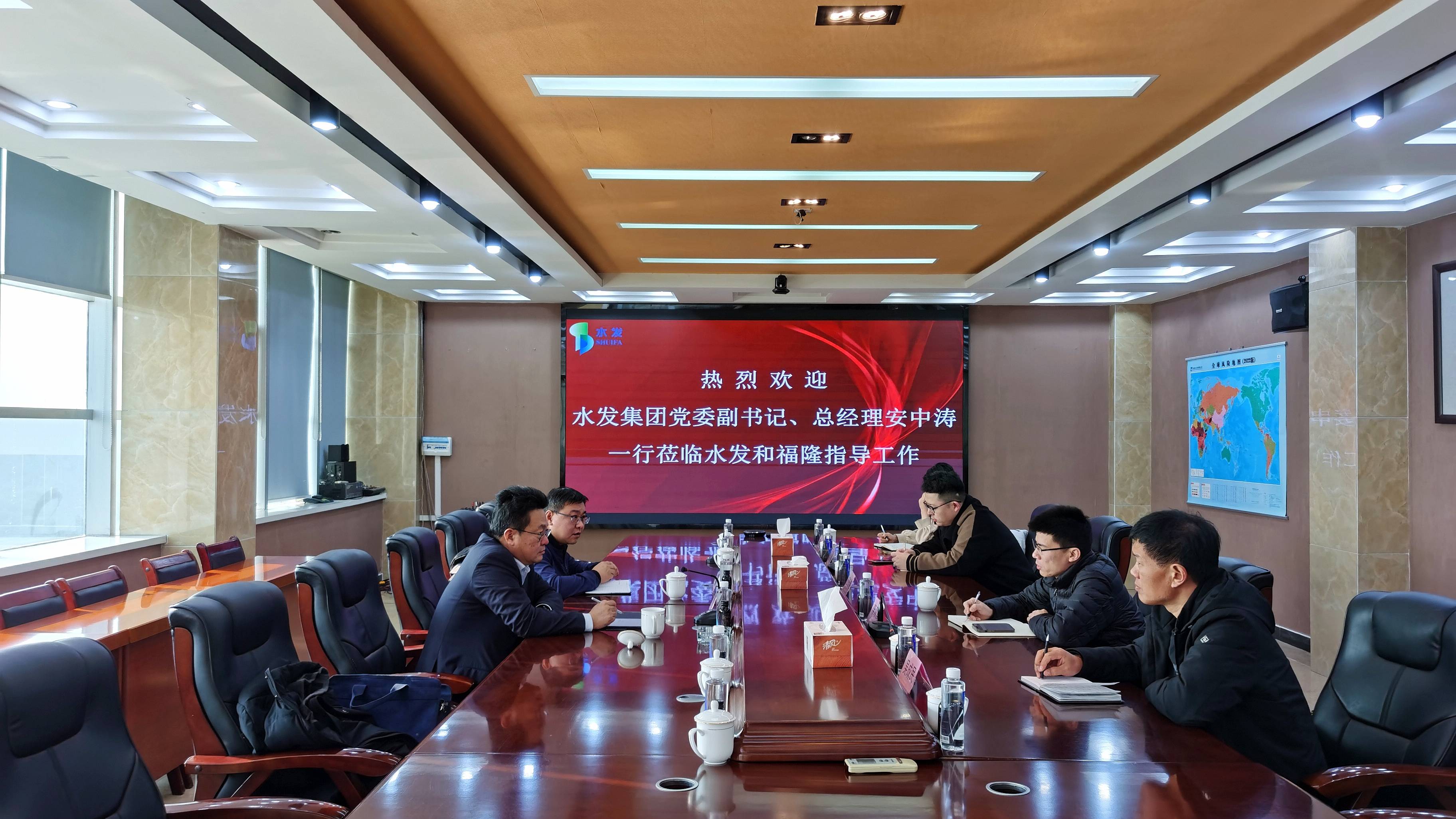 1月10日下午,水发集团党委副书记、总经理安中涛一行莅临水发和福隆调研指导工作,深入了解公司经营工作情况,并在会议室开展交流座谈会。
