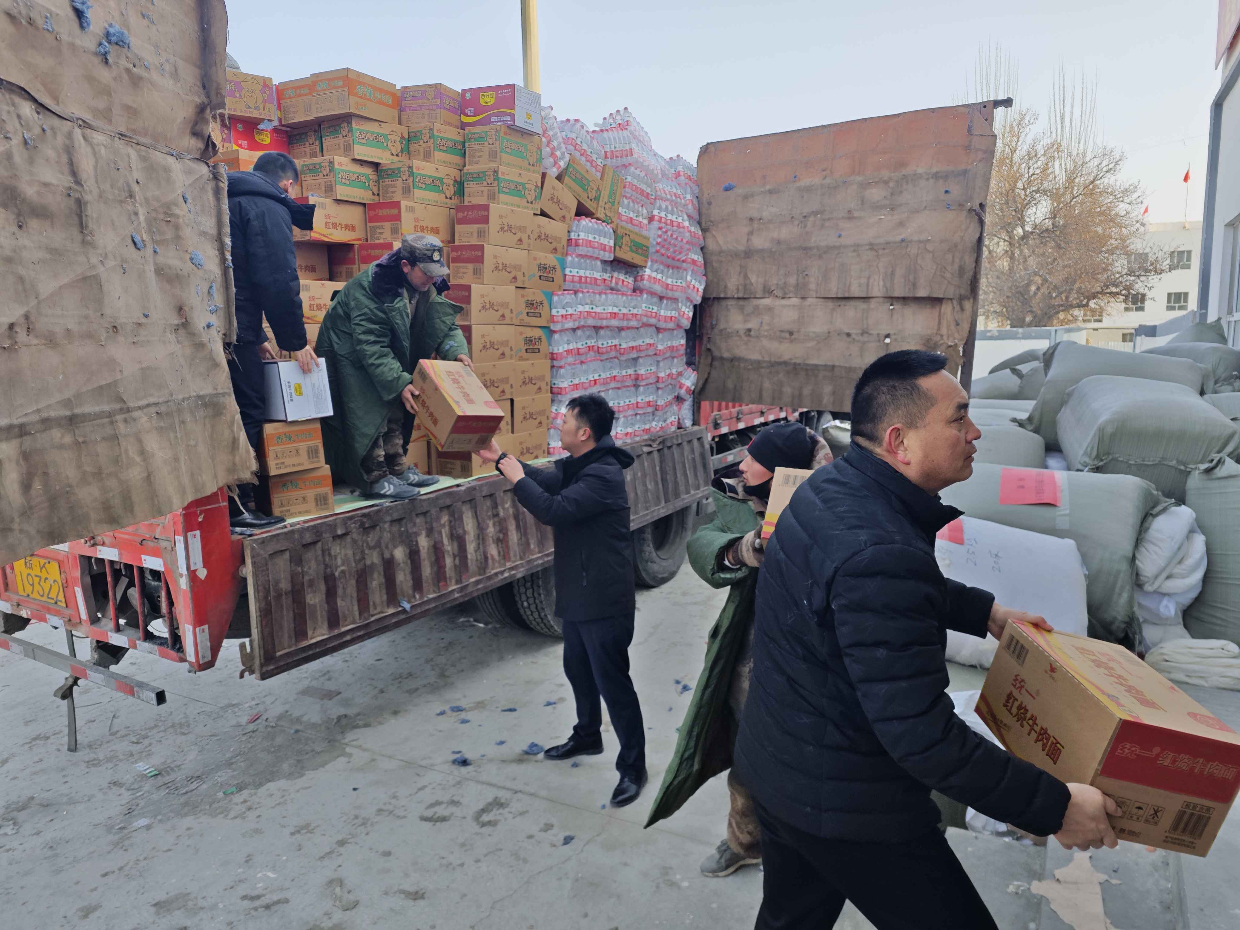 一方有难,八方支援。地震发生后,库车水控快速响应、紧急驰援,第一时间与乌什县抗灾指挥部联系,紧急筹备向乌什县地震灾区捐赠物资。库车水控总经理师军同志统筹协调了500床棉被、500箱矿泉水、500箱方便面等御寒物资,由公司董事长蒋曦龙同志带队,组织党员干部职工成立党员突击队连夜奔赴乌什县地震灾区。地震发生24小时内,库车水控党员突击队将物资发放到了受灾民众手中。
