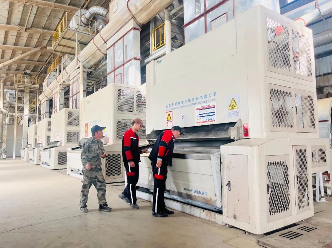 ▲轧花厂开秤在即,库车水控雅克拉轧花厂厂长单厚增带队对车间设备检修情况进行检查。