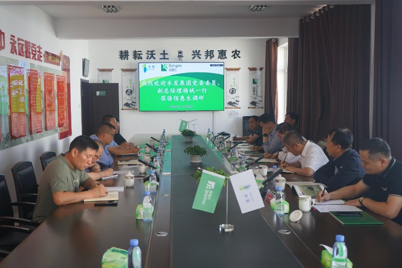9月12日,水发集团党委委员、副总经理杨斌一行到内蒙古佰惠生公司新农业科技股份有限公司(以下简称“佰惠生公司”)调研。水发农业集团党委副书记、副董事长刘道营陪同调研。